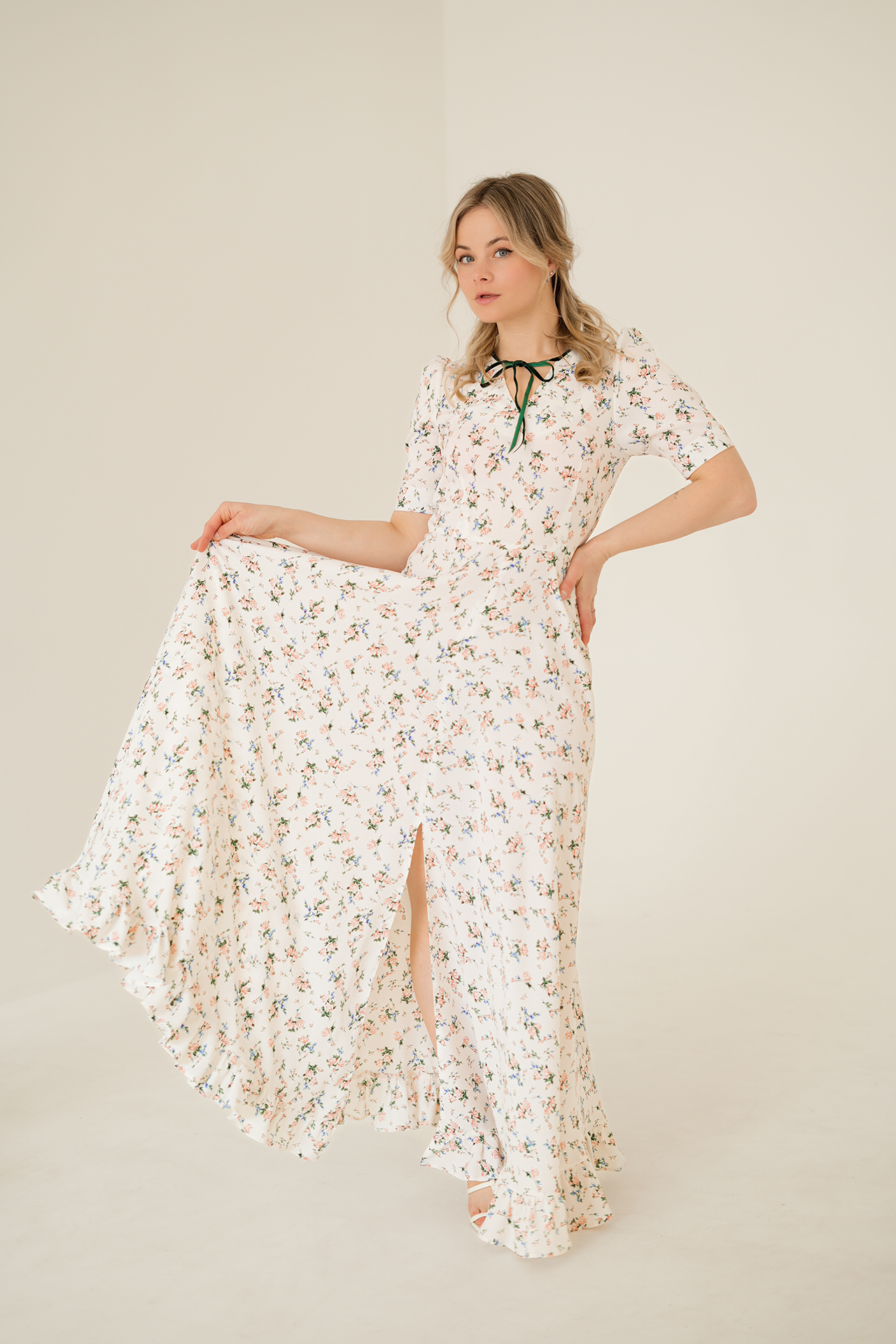 Lagana cvjetna haljina prožeta romantikom i prirodnim šarmom.
